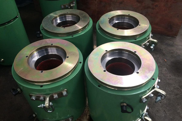 6、顶压器和张拉缸都是螺纹结构进行衔接,每次工作之前都要确定螺纹是否拧紧。拆装顶压器的时候,中缸需要伸出30mm。